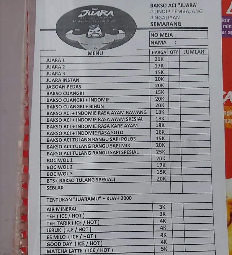 Harga Menu Baso Aci Juara Tembalang Semarang Terdekat