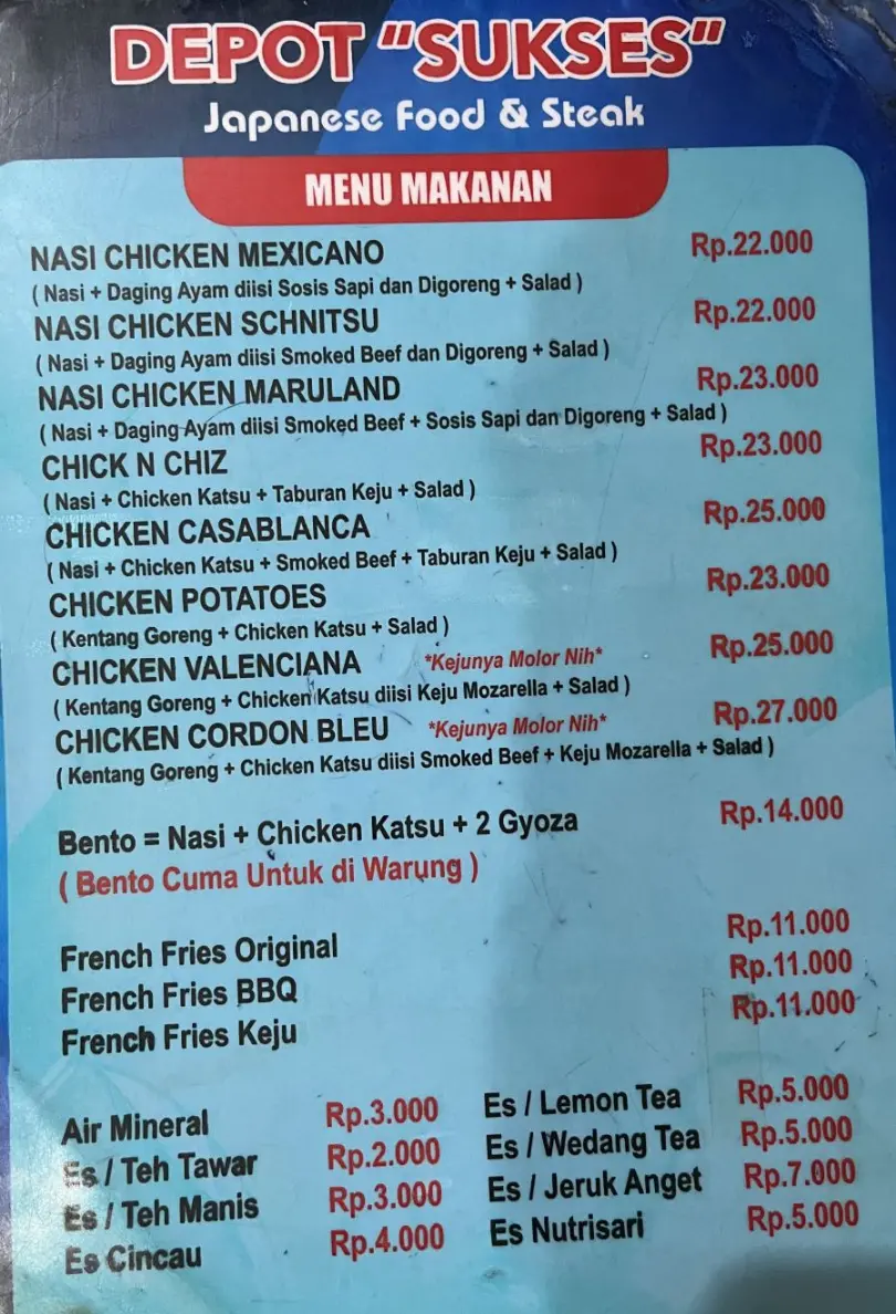 Menariknya lagi, resto ini menyediakan paket hemat dan juga menu spesial yang bisa kamu pilih. Tenang saja, makanan di sini tidak akan menguras dompet kamu. Makanan ala Jepang buatan Depot Sukses Tembalang sangat ramah di kantong sehingga tidak heran jika banyak diminati, terutama oleh kalangan mahasiswa.