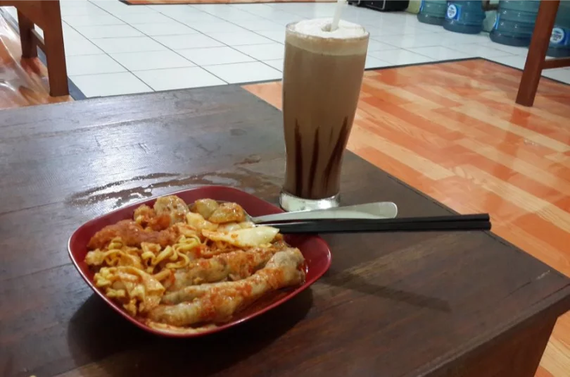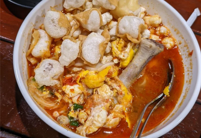 Seblak di sini memiliki kuah yang kental dengan rasa kencur yang tidak terlalu kuat, memadukan rasa manis dan pedas dalam porsi yang besar.